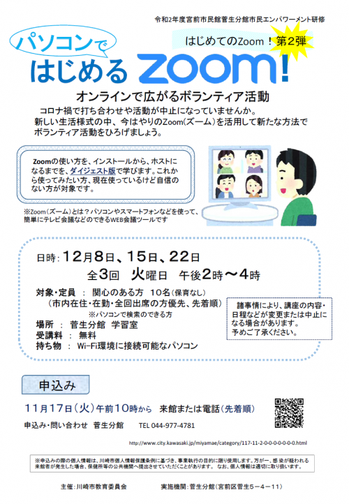 - 12月15日(火) 午後2時から4時 Zoomのホストになってみよう!