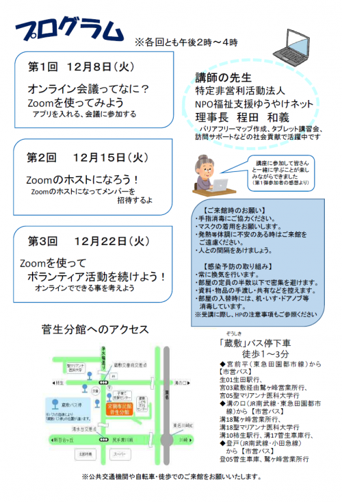 - 12月22日(火) 午後2時から4時 Zoomを使ってボランティア活動を続けよう!