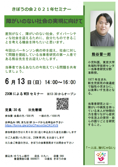 先生の現在に至るまでの、色々なご苦労やご経験や、当事者からみた社会的課題など、お話頂く予定です。